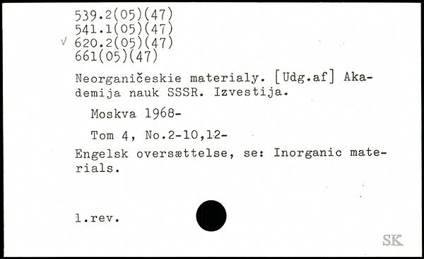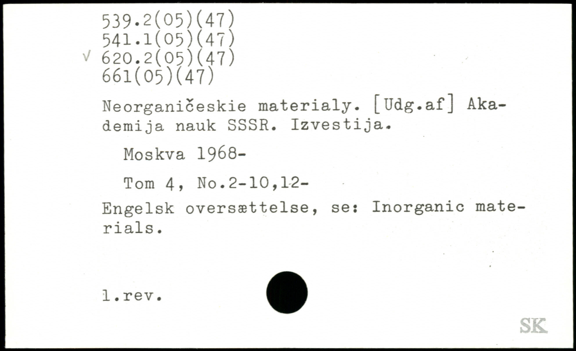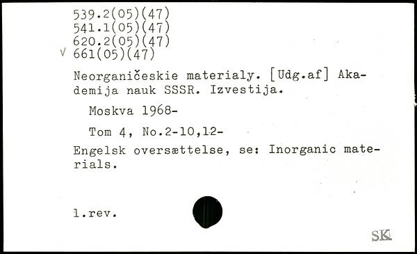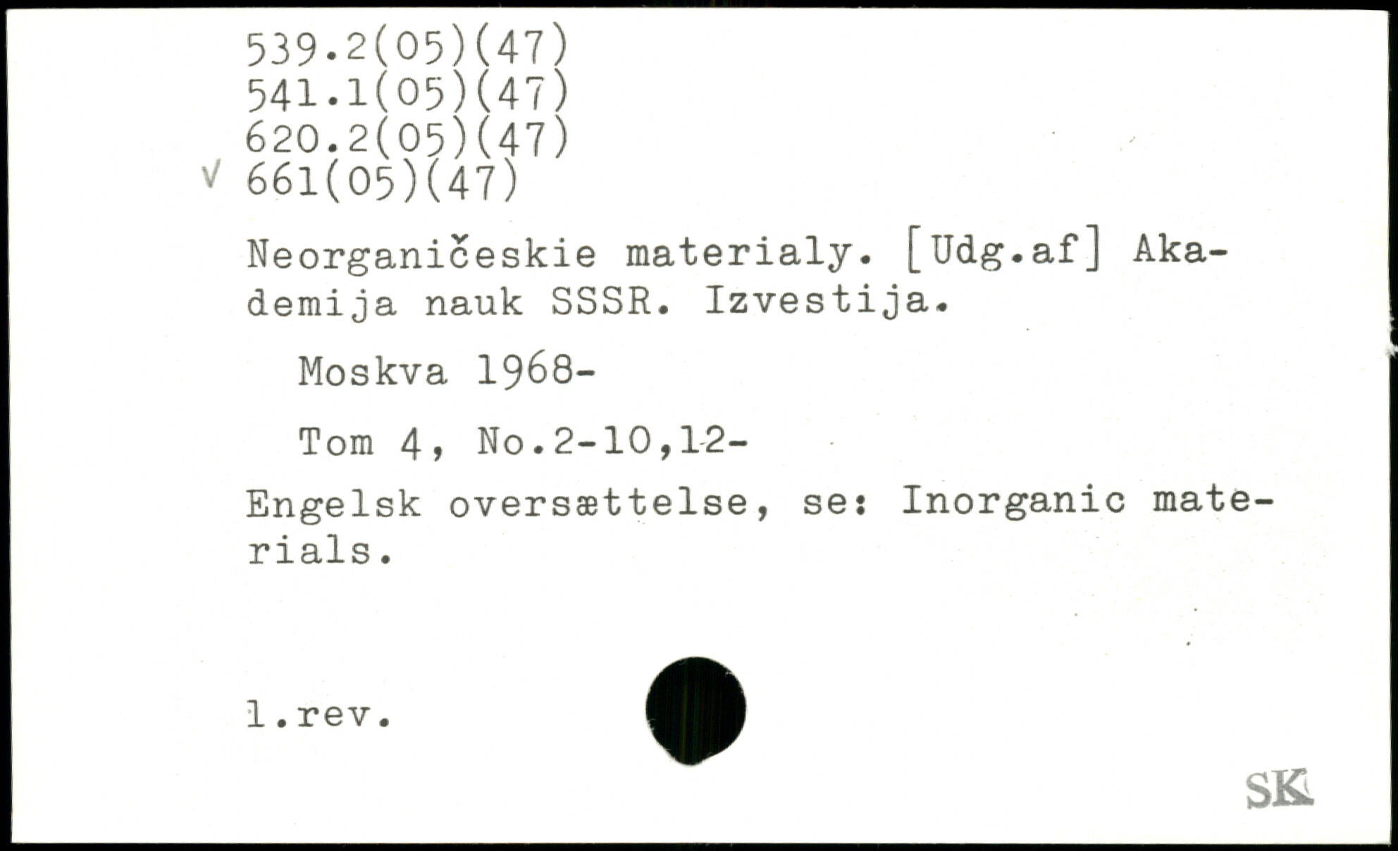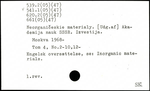 Neorganiceskie materialy. [Udg.af] Aka-demija nauk SSSR. Izvestija.