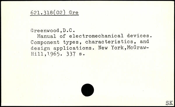 Manual of electromechanical devices. Component types, characteristics, and design applications.