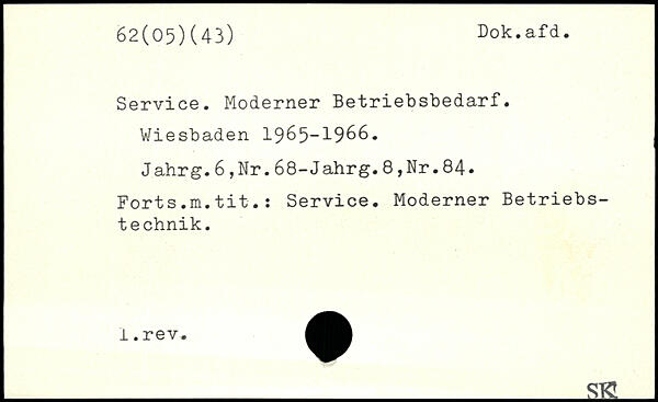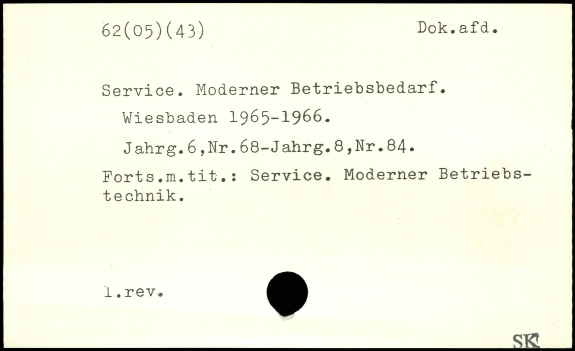 Service. Moderner Betriebsbedarf. Wiesbaden 1965-1966. Jahrg.6,Nr.68-Jahrg.8,Nr.84. Forts.m.tit.î Service. Moderner Betriebstechnik. _SS_