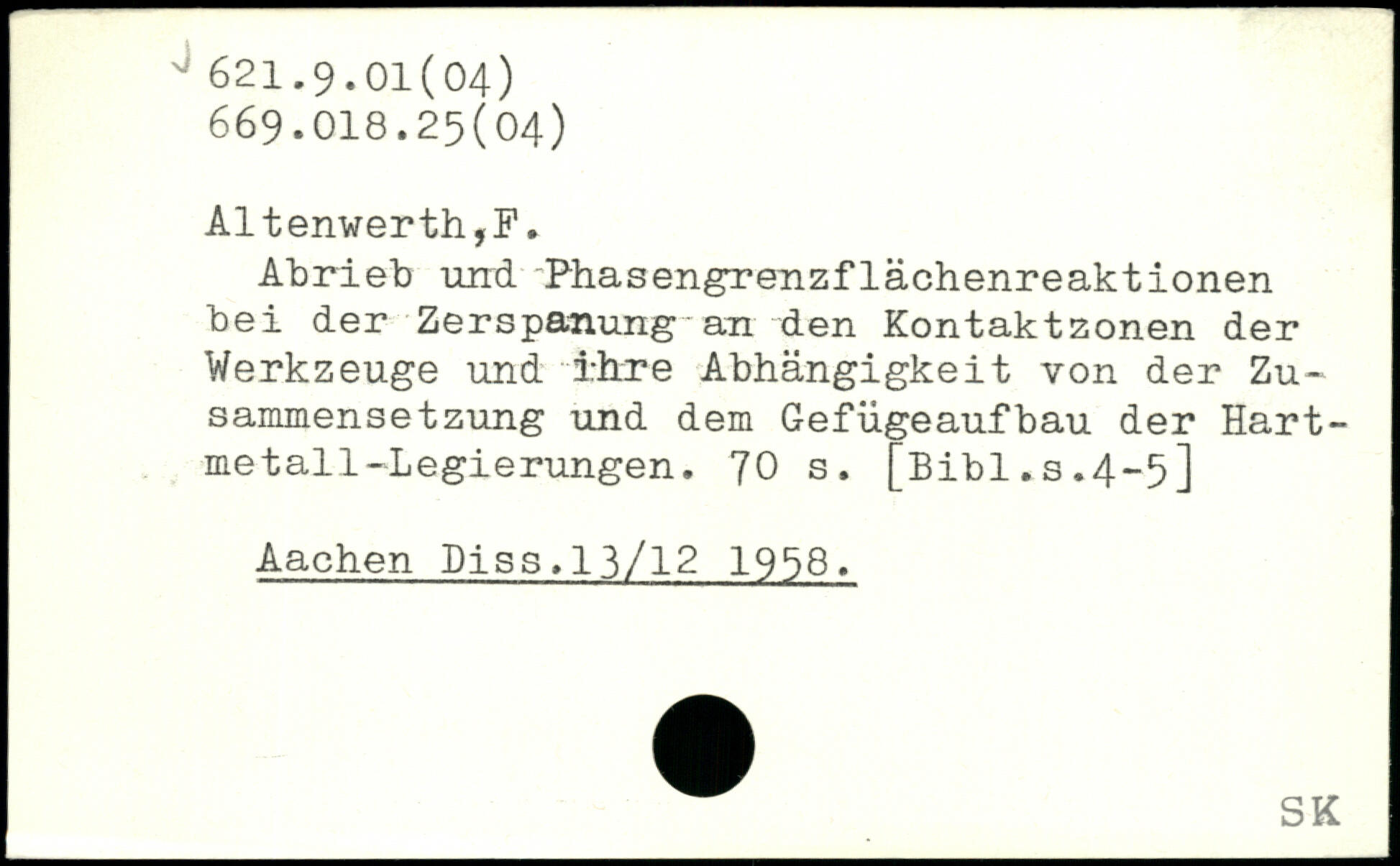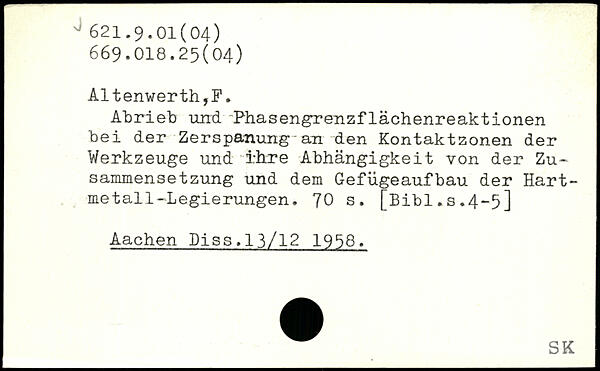 Abrieb und -Phasengrenzflächenreaktionen bei der Zerspanung an den Kontaktzonen der Werkzeuge und ihre Abhängigkeit von der Zusammensetzung und dem Gefügeaufbau der Hartmetall-Legierungen.