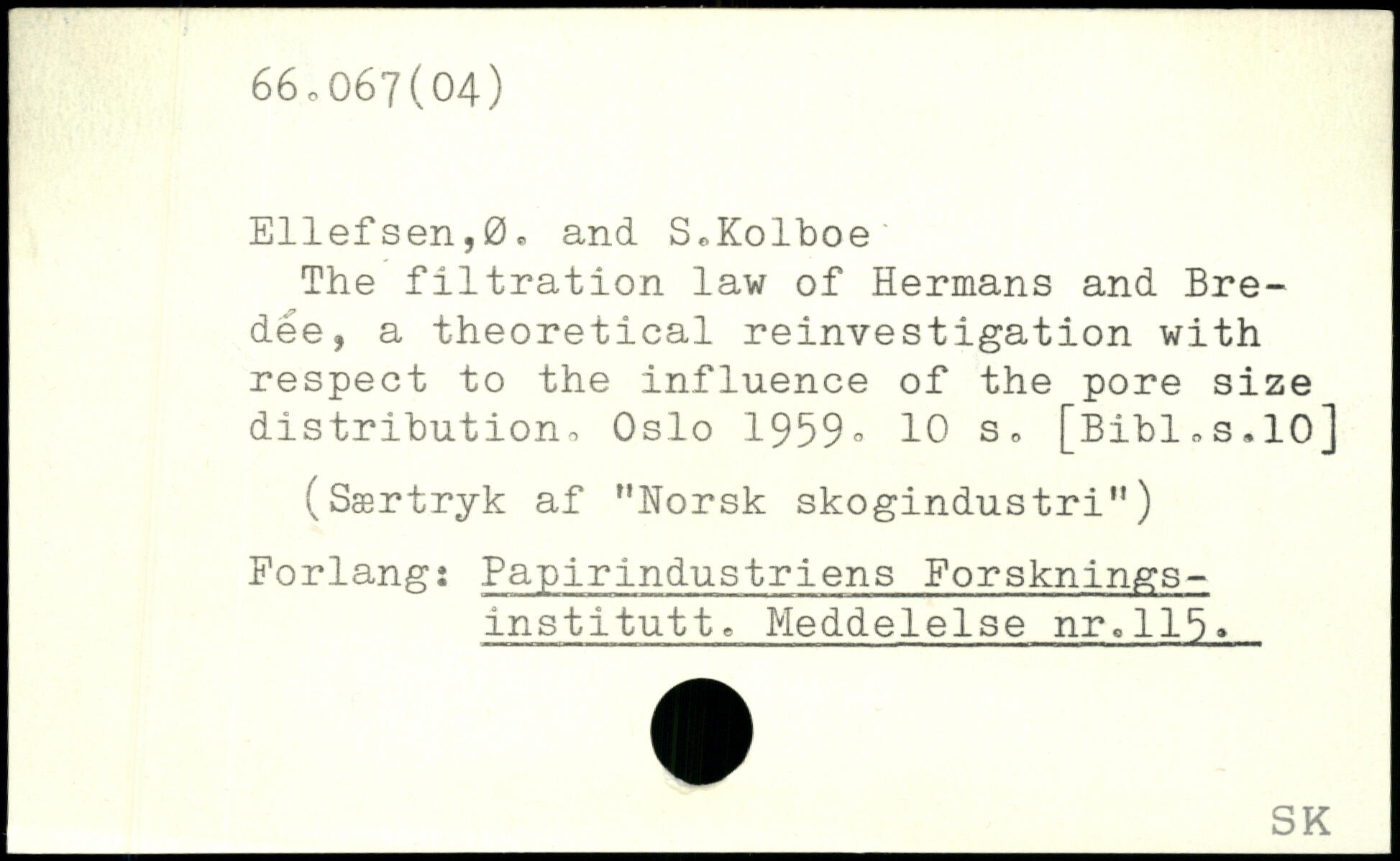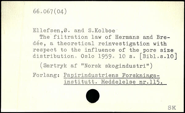 Ellefsen,0o and S^Kolboe The filtration law of Hermans and Bre-dée, a theoretical reinvestigation with respect to the influence of the pore size distribution. Oslo 1959