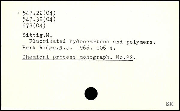 Fluorinated hydrocarbons and polymers. Park Ridge,N.J. 1966.