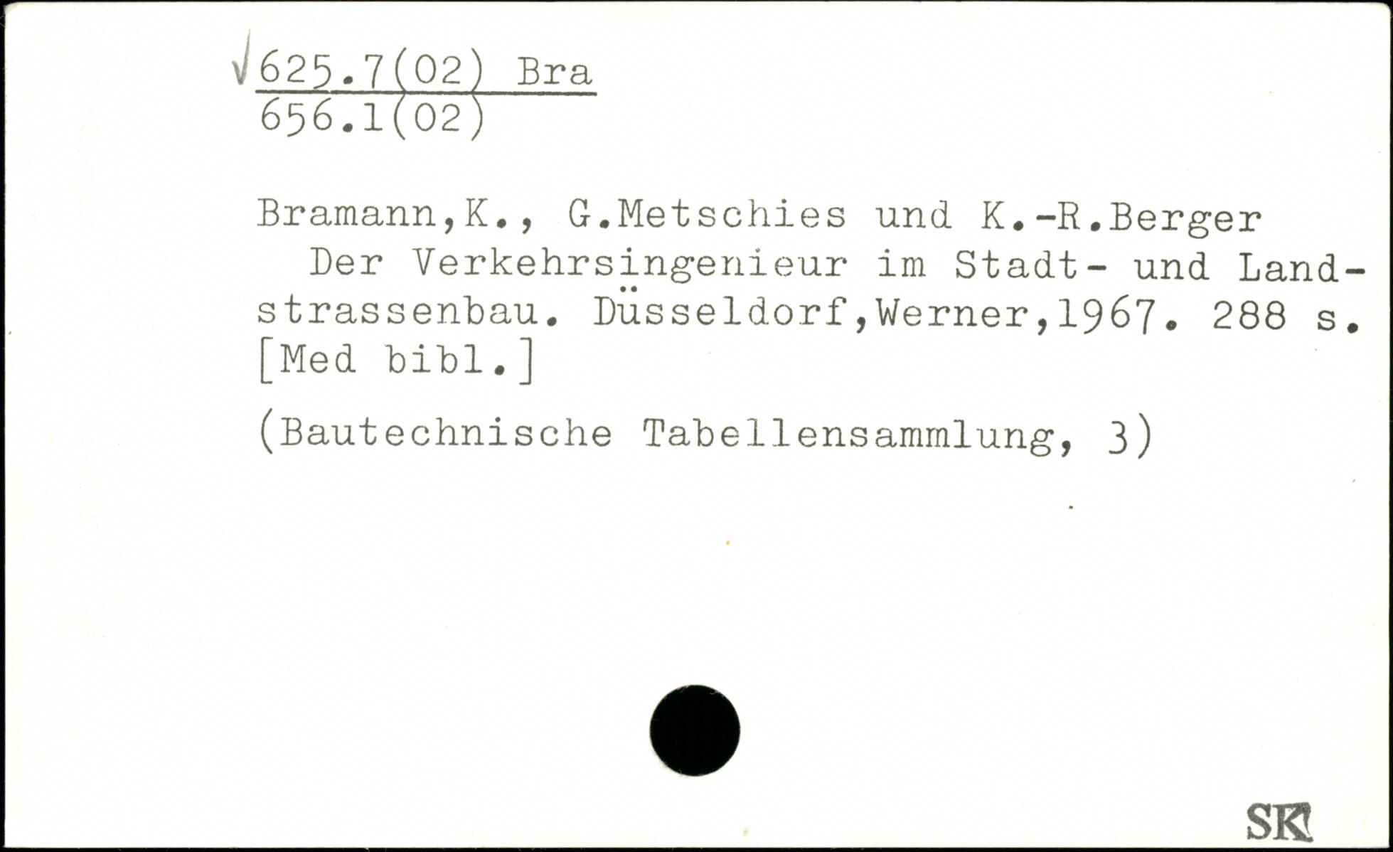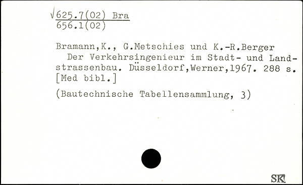 Bramann,K., G.Metschies und K.-R.Berger Der Verkehrsingenieur im Stadt- und Land-strassenbau.