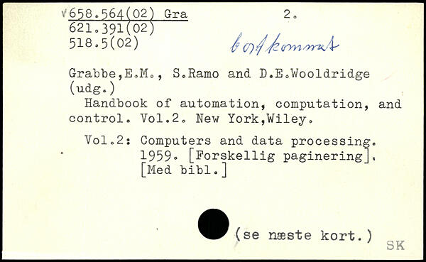 Grabbe,E.Mo, S.Ramo and D.E,Wooldridge (udg.) Handbook of automation, computation, and control.