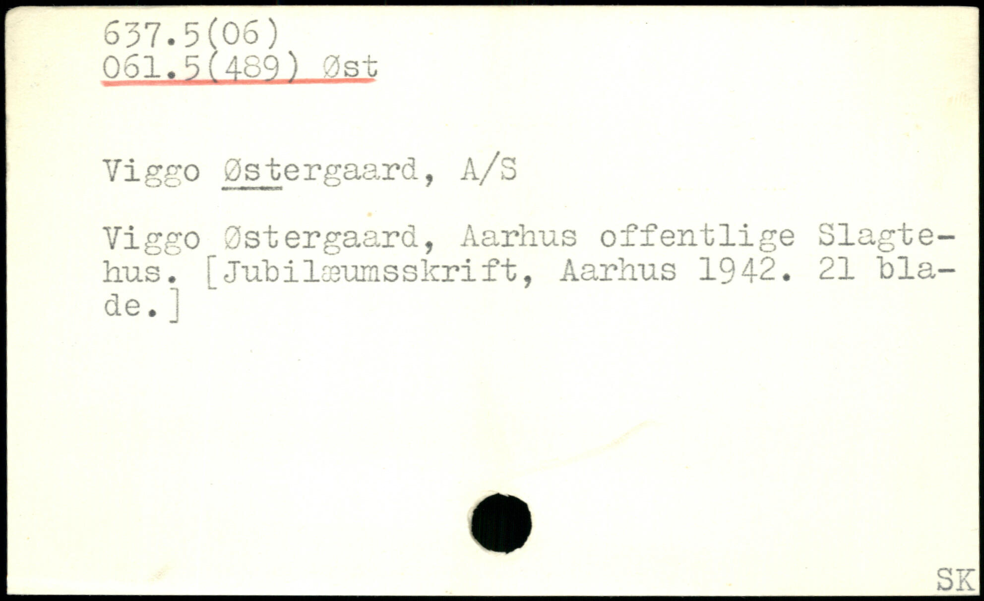061. 5 (4-SQ ") Øst Viggo østergaard, A/S Viggo Østergaard, Aarhus offentlige Slagtehus. [Jubilæumsskrift