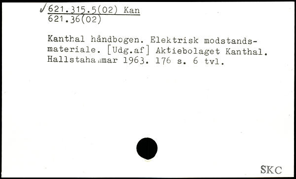 Kanthal håndbogen. Elektrisk modstands-materiale. [Udg.af] Aktiebolaget Kanthal. Hallstahaamar 1963.