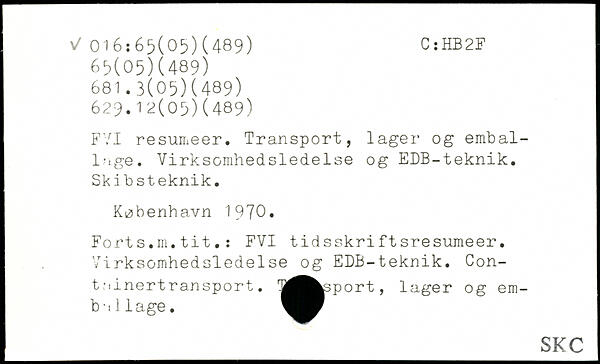 FVI resumeer. Transport, lager og embal-lage. Virksomhedsledelse og EDB-teknik. Skibsteknik.