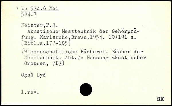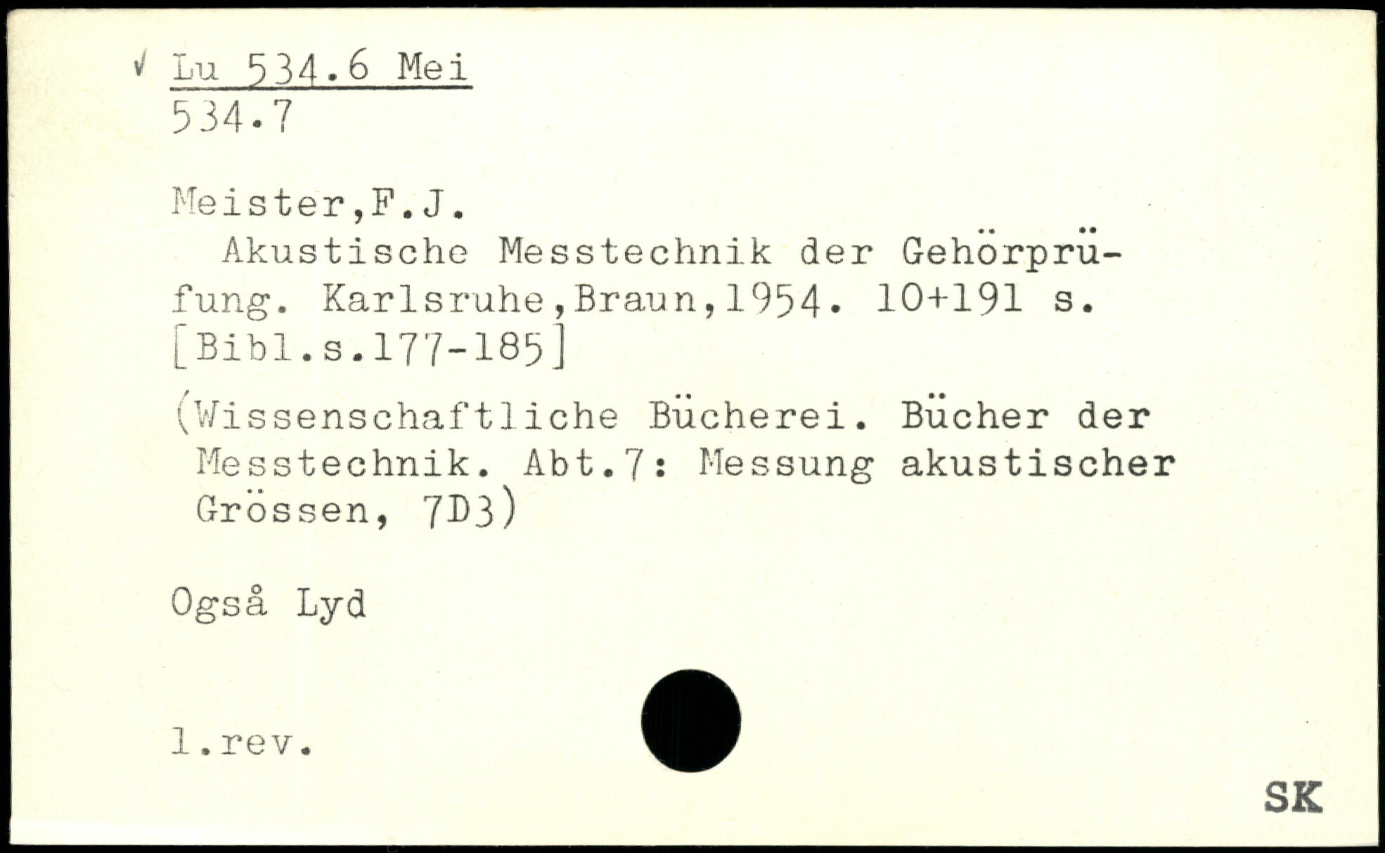 Me i s t e r, F. J. Akustische Messtechnik der Gehorpru-fung.