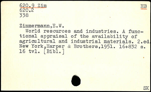 World resources and industries. A functional appraisal of the availability of agricultural and industrial materials.