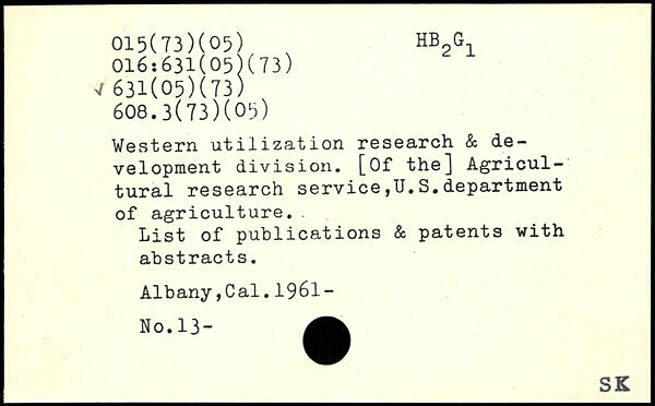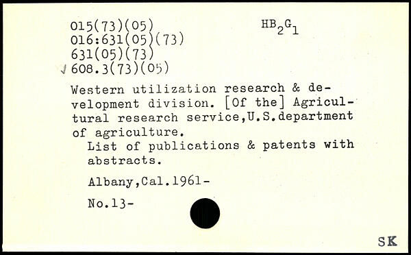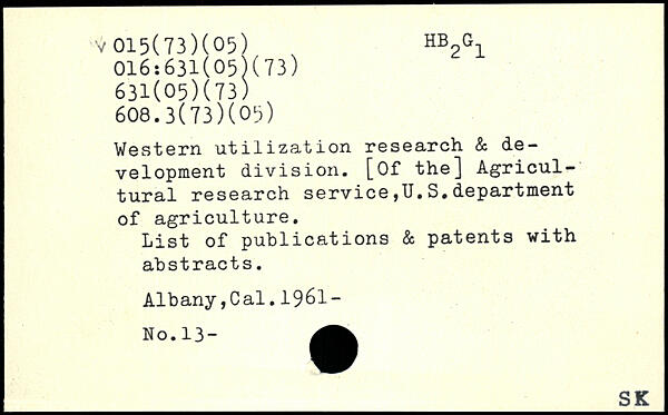 Western utilization research & development division. [Of the] Agricultural research service,U.S.department of agriculture. List of publications & patents with abstracts. Albany,Cal.1961-