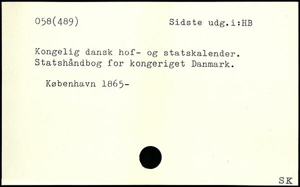 Kongelig dansk hof- og statskalender. Statshåndbog for kongeriget Danmark.