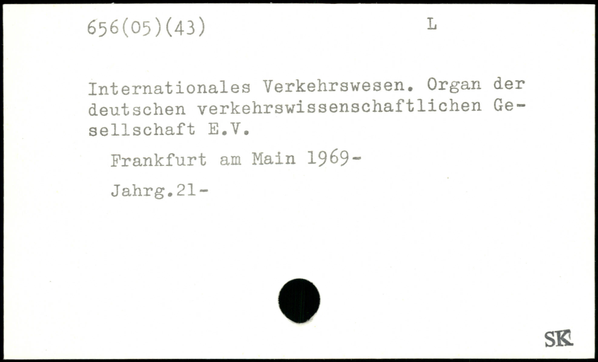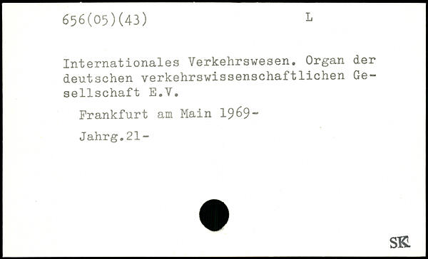 Internationales Verkehrswesen. Organ der deutschen verkehrswissenschaftlichen Gesellschaft E.V. Frankfurt am Main 19 69 ~ Jahrg.21-
