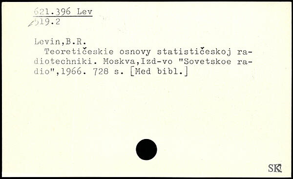 Teoreticeskie osnovy statisticeskoj ra-diotechniki. Moskva,Izd-vo "Sovetskoe radio”, 1966.