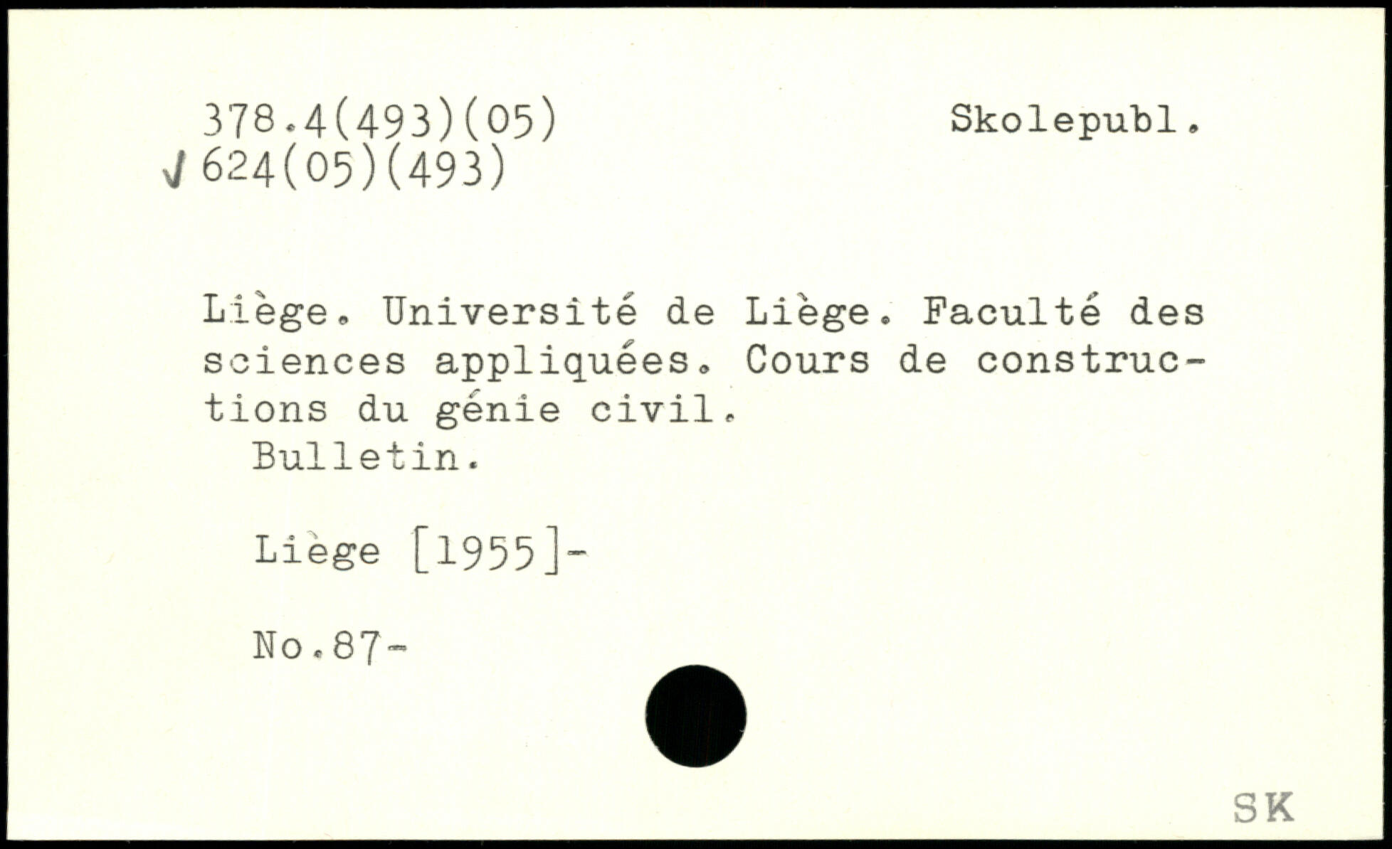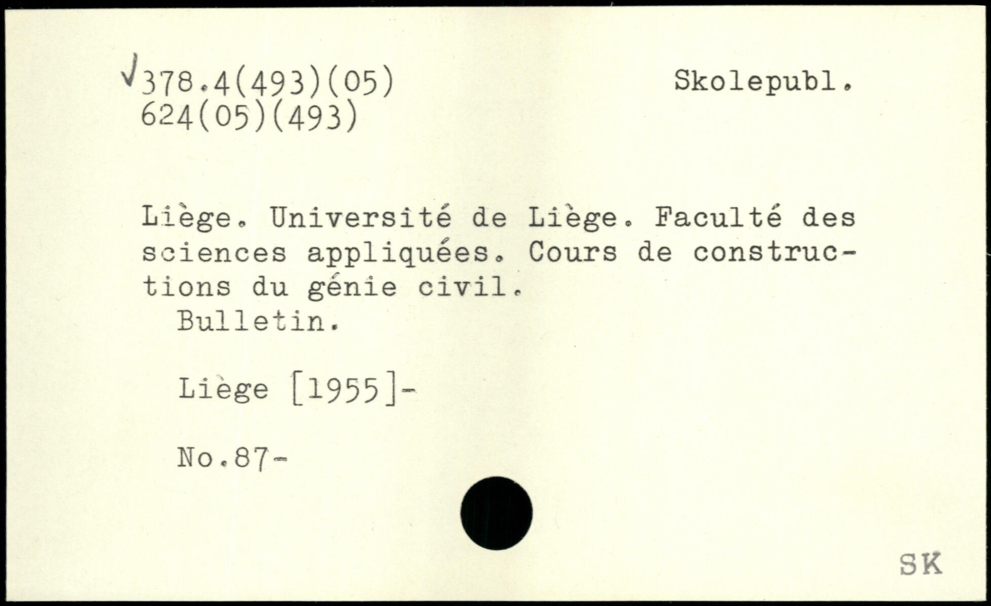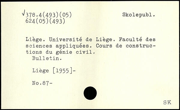 Liège. Université de Liège. Faculté des sciences appliquées. Cours de constructions du génie civil. Bulletin. Liège [1955]- No.87-
