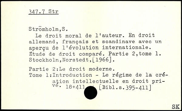 Le droit moral de l'auteur. En droit allemand, français et Scandinave avec un aperçu de l'évolution internationale. Etude de droit comparé. Partie 2,tome 1.