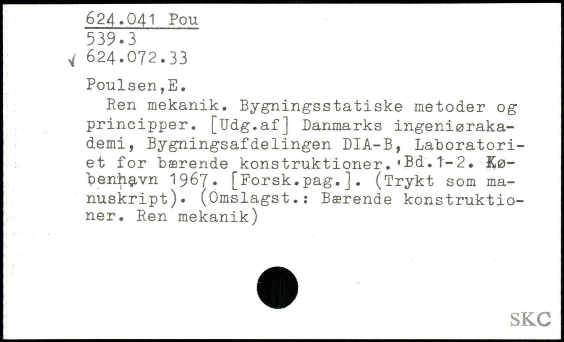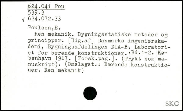 Ren mekanik. Bygningsstatiske metoder og principper. [Udg.af] Danmarks ingeniørakademi, Bygningsafdelingen DIA-B, Laboratoriet for bærende konstruktioner..