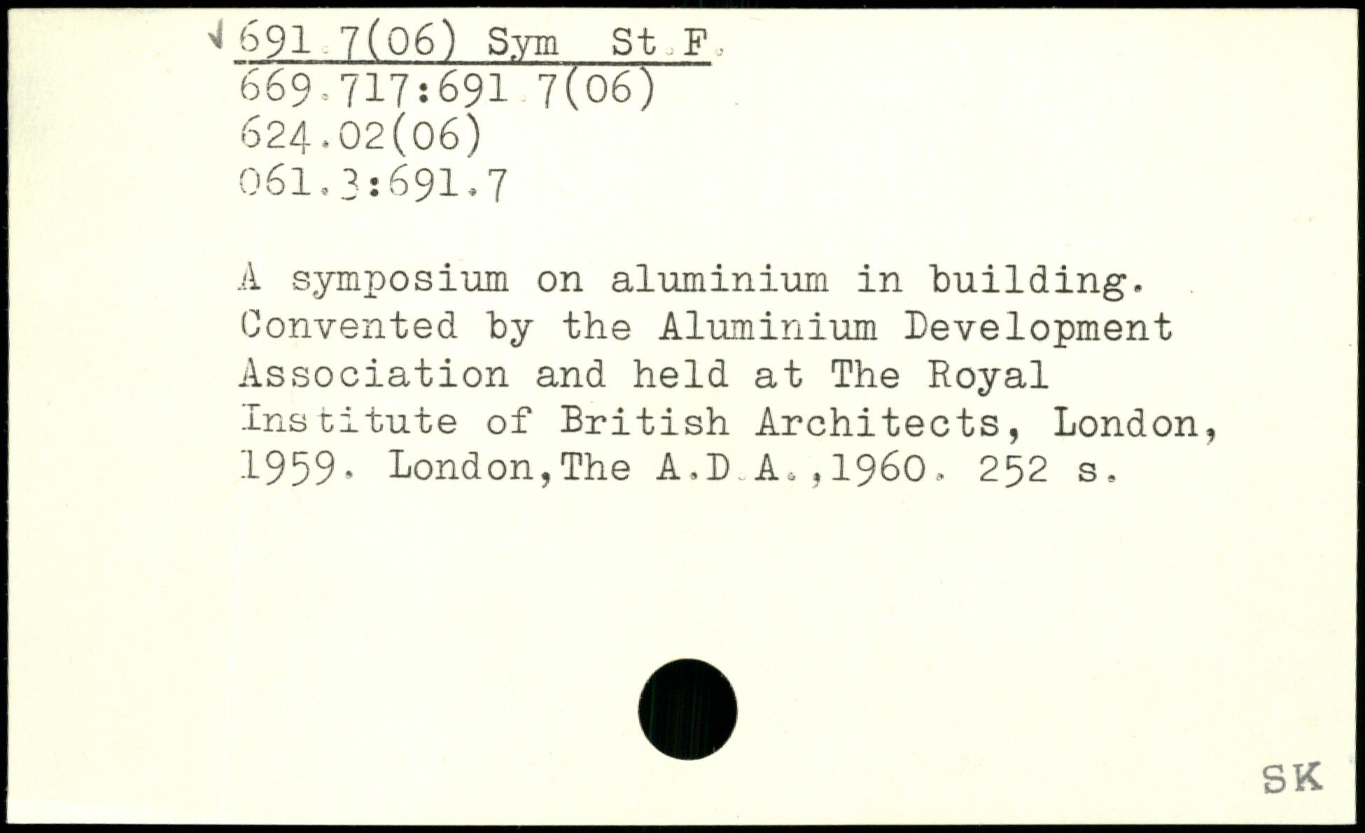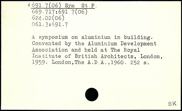 A symposium on aluminium in building. Convented by the Aluminium Development Association and held at The Royal