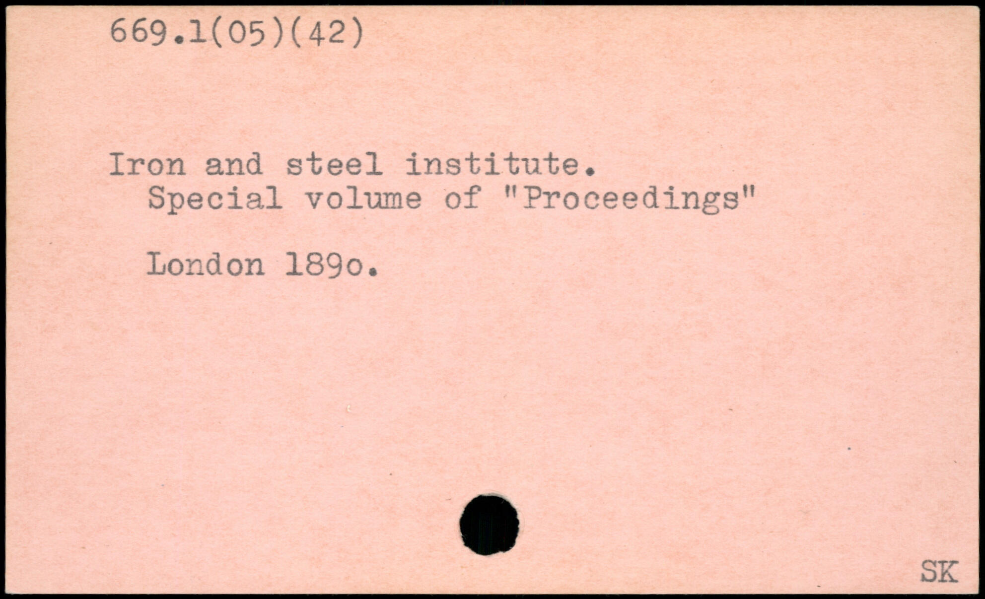 Iron and steel institute. Special volume of "Proceedings'1 London 189o.