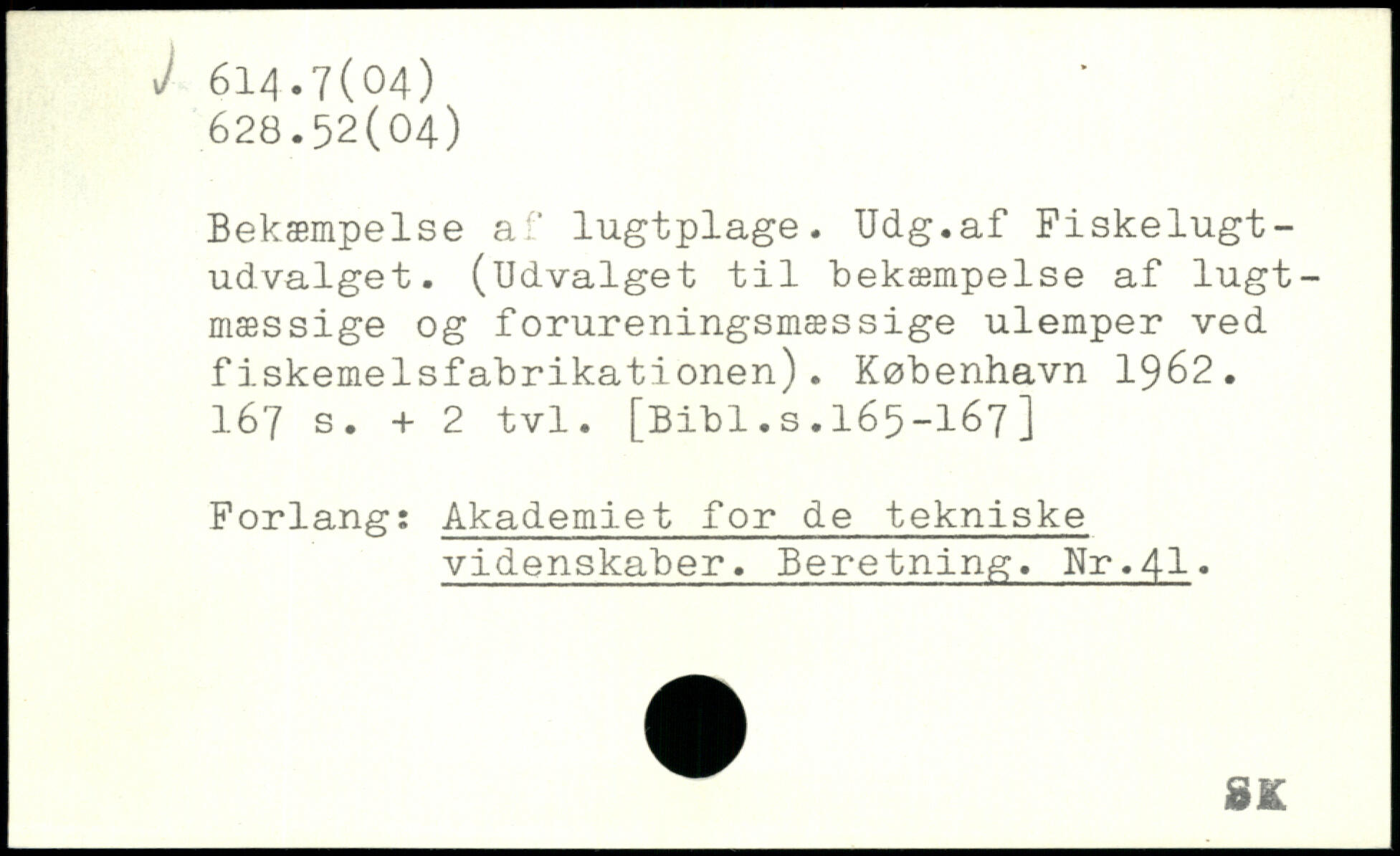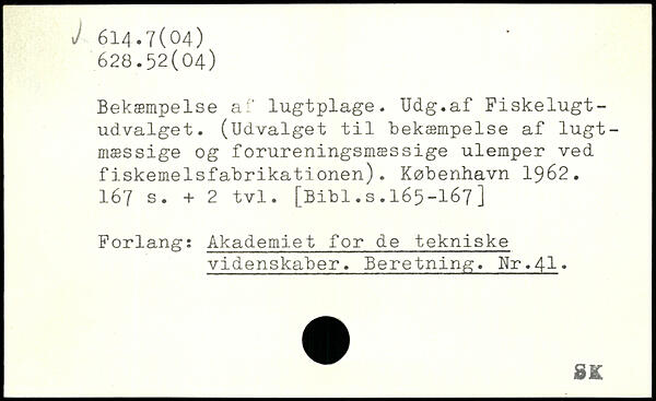 Bekæmpelse af lugtplage. Udg.af Fiskelugtudvalget. (Udvalget til bekæmpelse af lugtmæssige og forureningsmæssige ulemper ved fiskemelsfabrikationen).