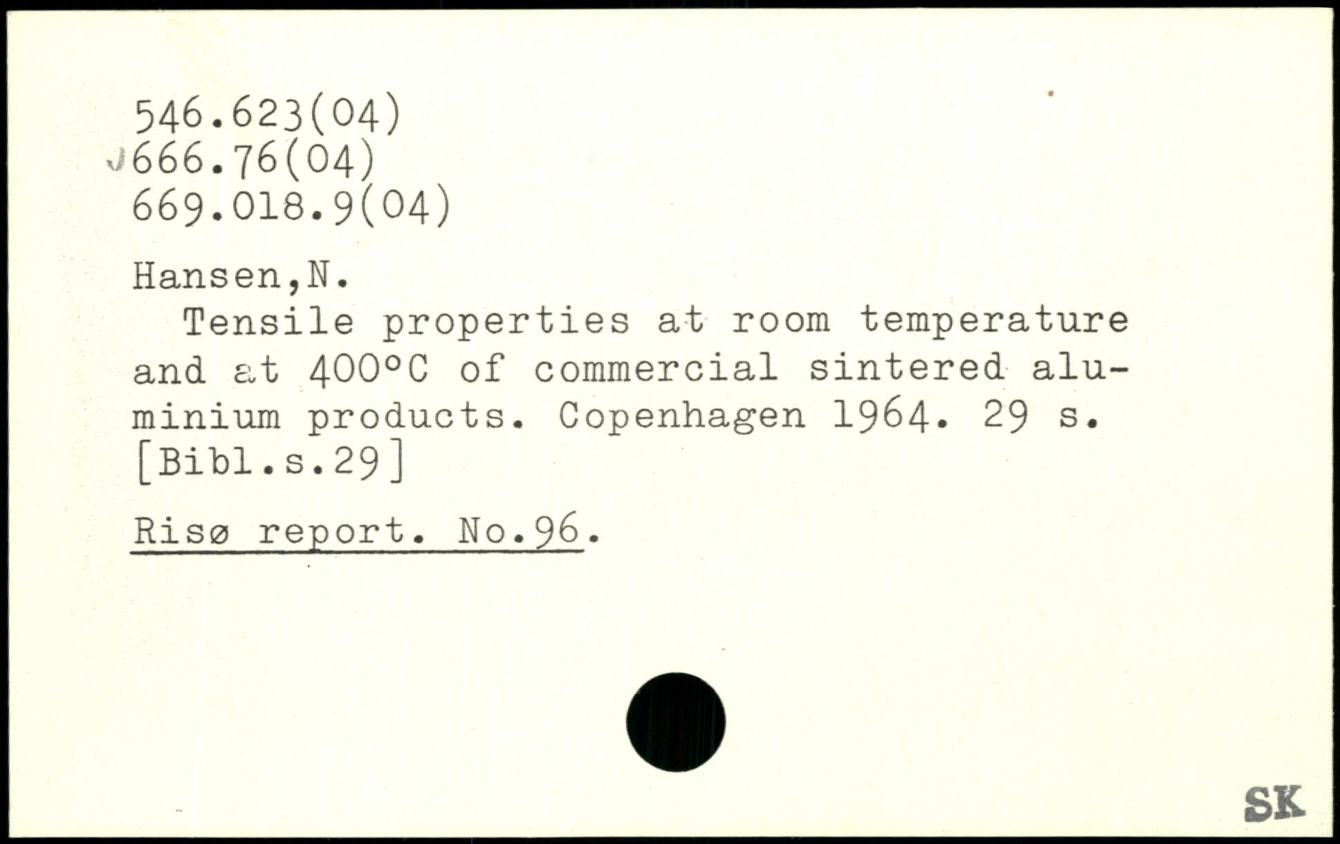 Tensile properties at room temperature and at 400.C of commercial sintered aluminium products.