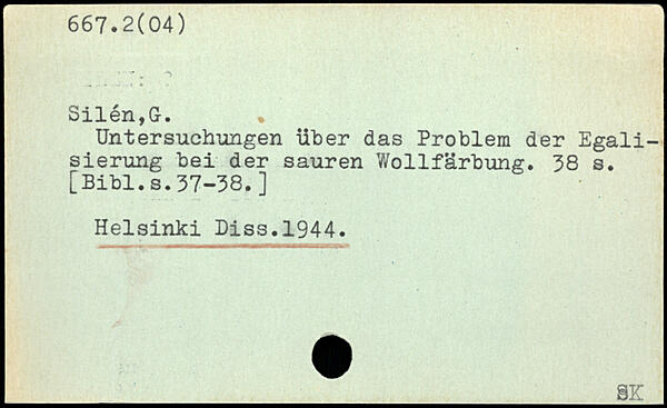 Silen,G. , Untersuchungen über das Problem der Egalisierung bei der sauren Wollfärbung.