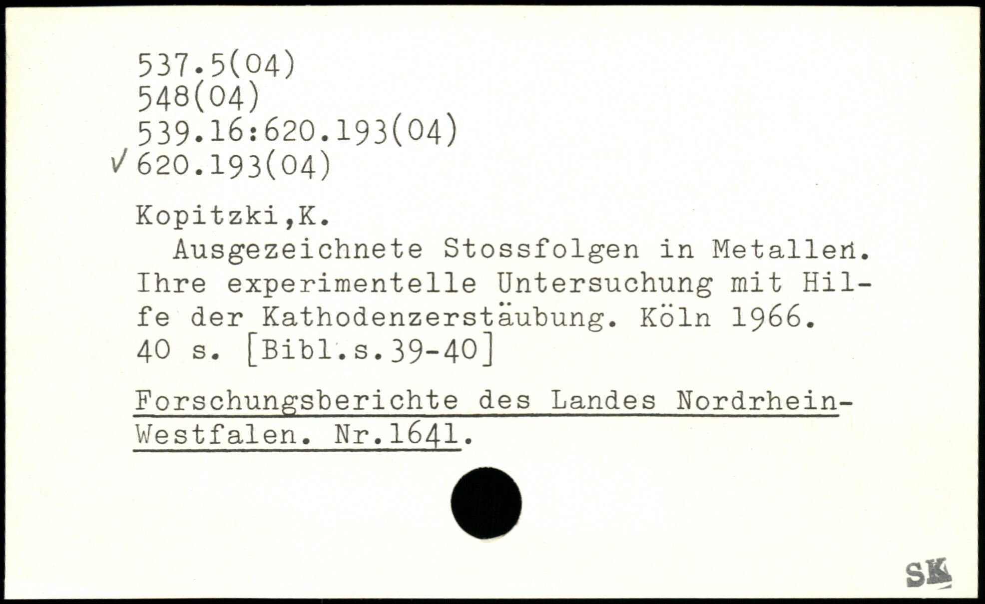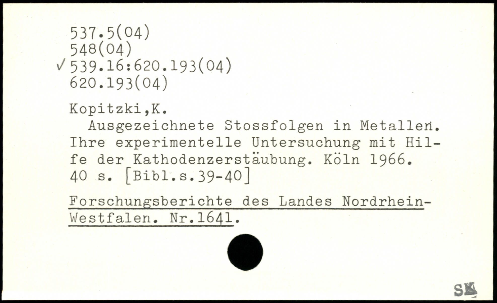 Ausgezeichnete Stossfolgen in Metallen. Ihre experimentelle Untersuchung mit Hilfe der Kathodenzerstäubung.