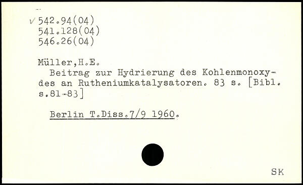 Beitrag zur Hydrierung des Kohlenmonoxydes an Rutheniumkatalysatoren.