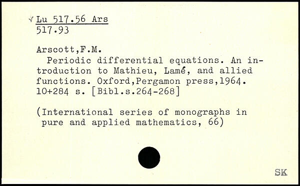 Periodic differential equations. An introduction to Mathieu, Lamé, and allied functions.
