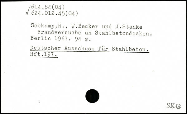 Seekamp,H., W.Becker und J.Stanke Brandversuche an Stahlbetondecken.
