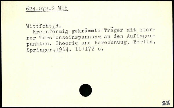 Kreisförmig gekrümmte Träger mit starrer Torsionseinspannung an den Auflagerpunkten. Theorie und Berechnung. Berlin, Springer,19Ö4. 11+1/