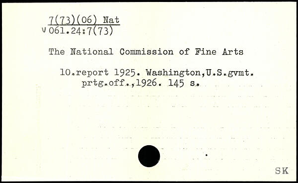 The National Commission of Pine Arts 10.report 1925, Washington,U.S.gvmt. prtg.off.,1926.