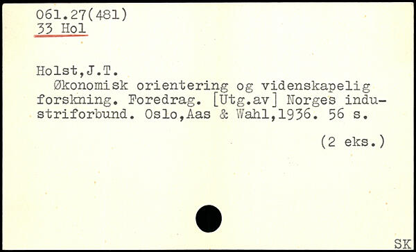økonomisk orientering og videnskapelig forskning. Foredrag. [Utg.av] Norges industriforbund.