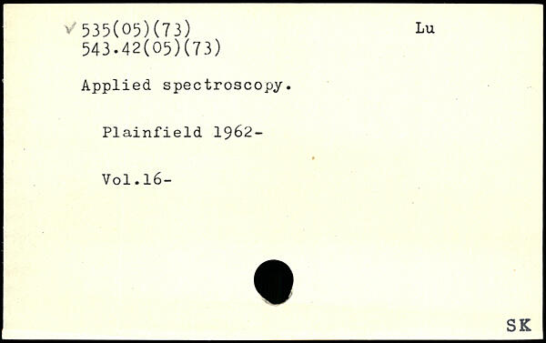 Applied, spectroscopy. Plainfield 1962-
