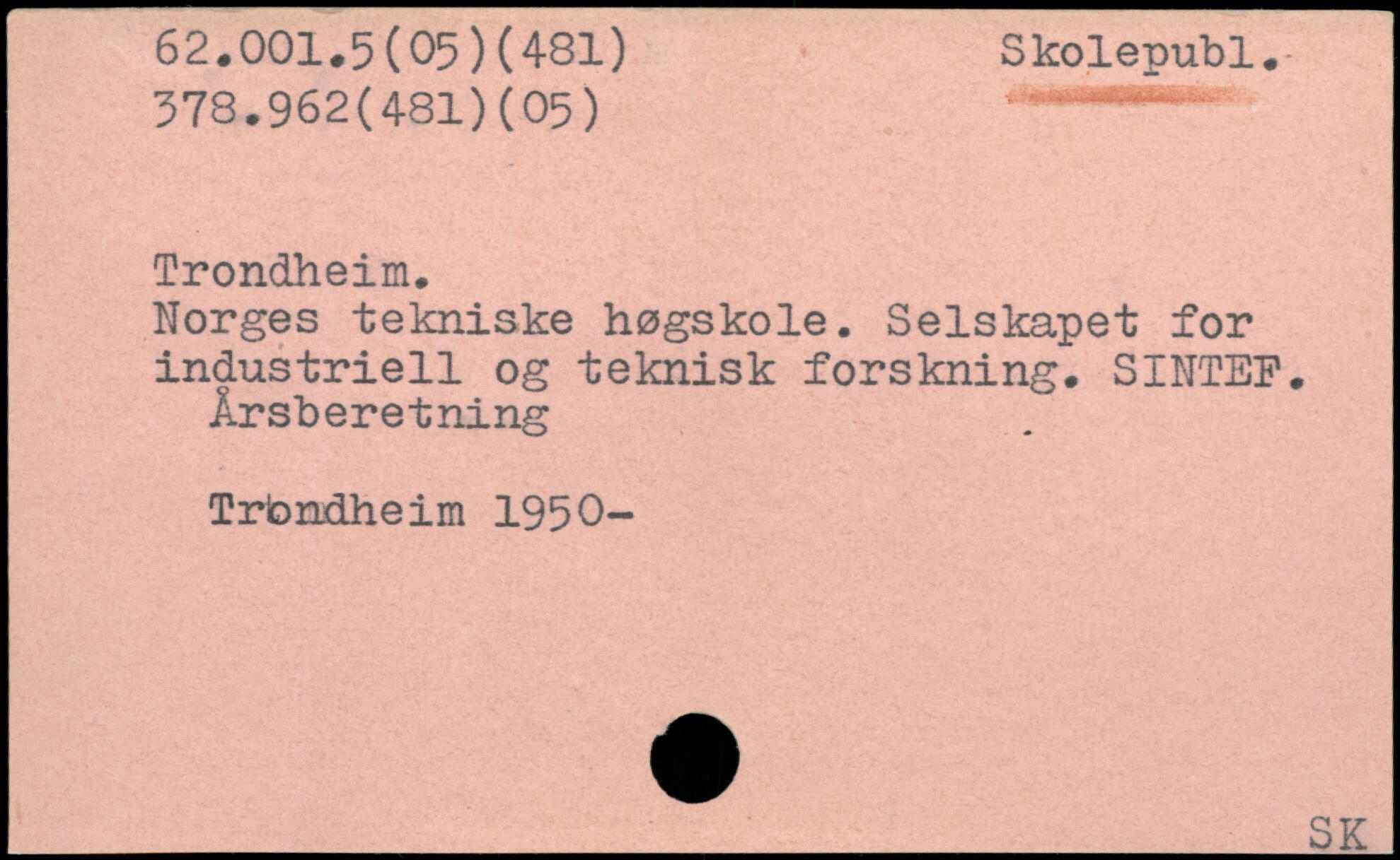 Norges tekniske høgskole. Selskapet for industriell og teknisk forskning. SINTEF. Årsberetning Trbndheim 1950-