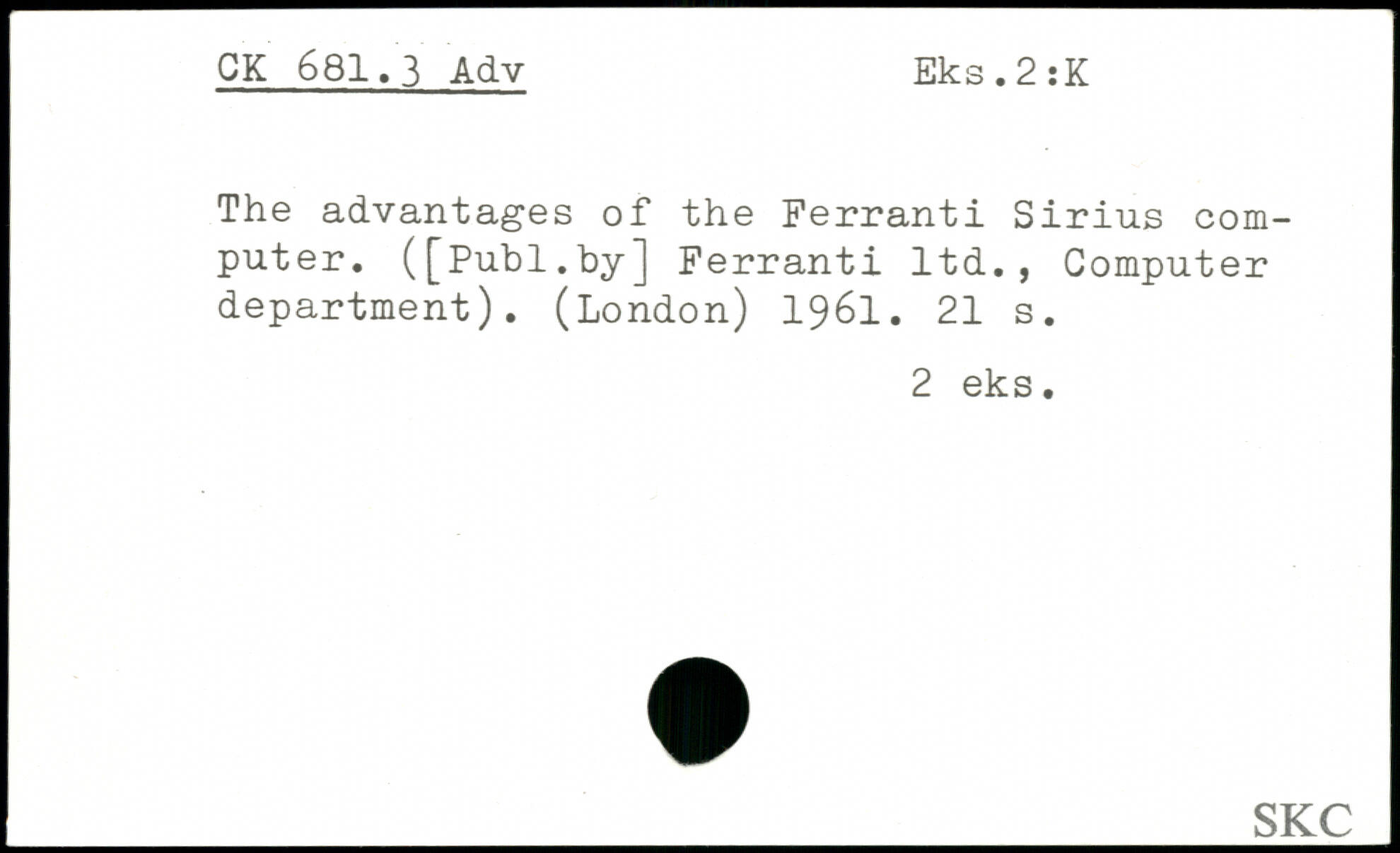 The advantages of the Ferranti Sirius computer. (