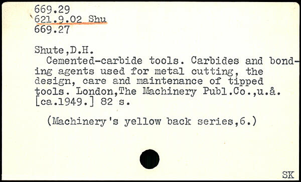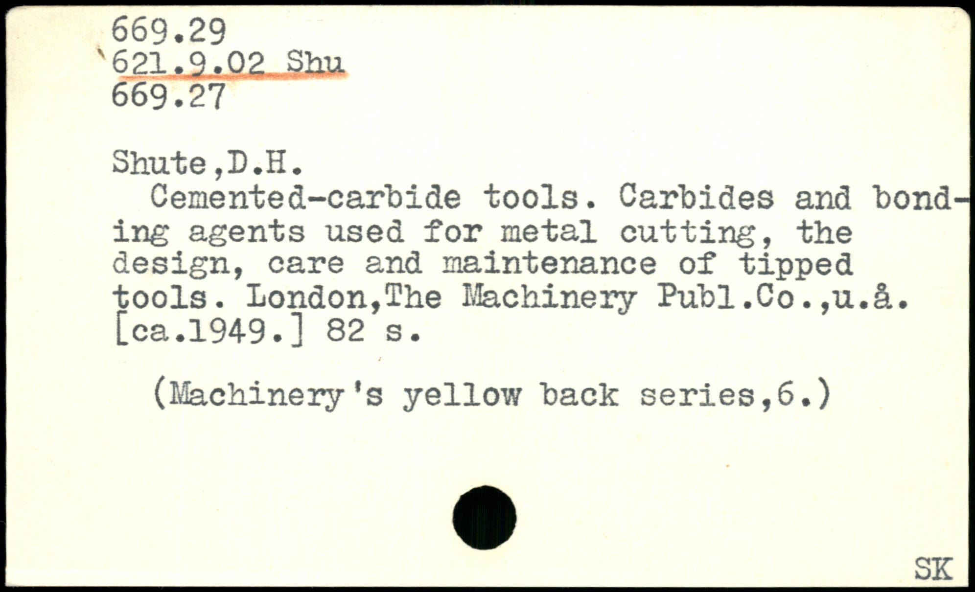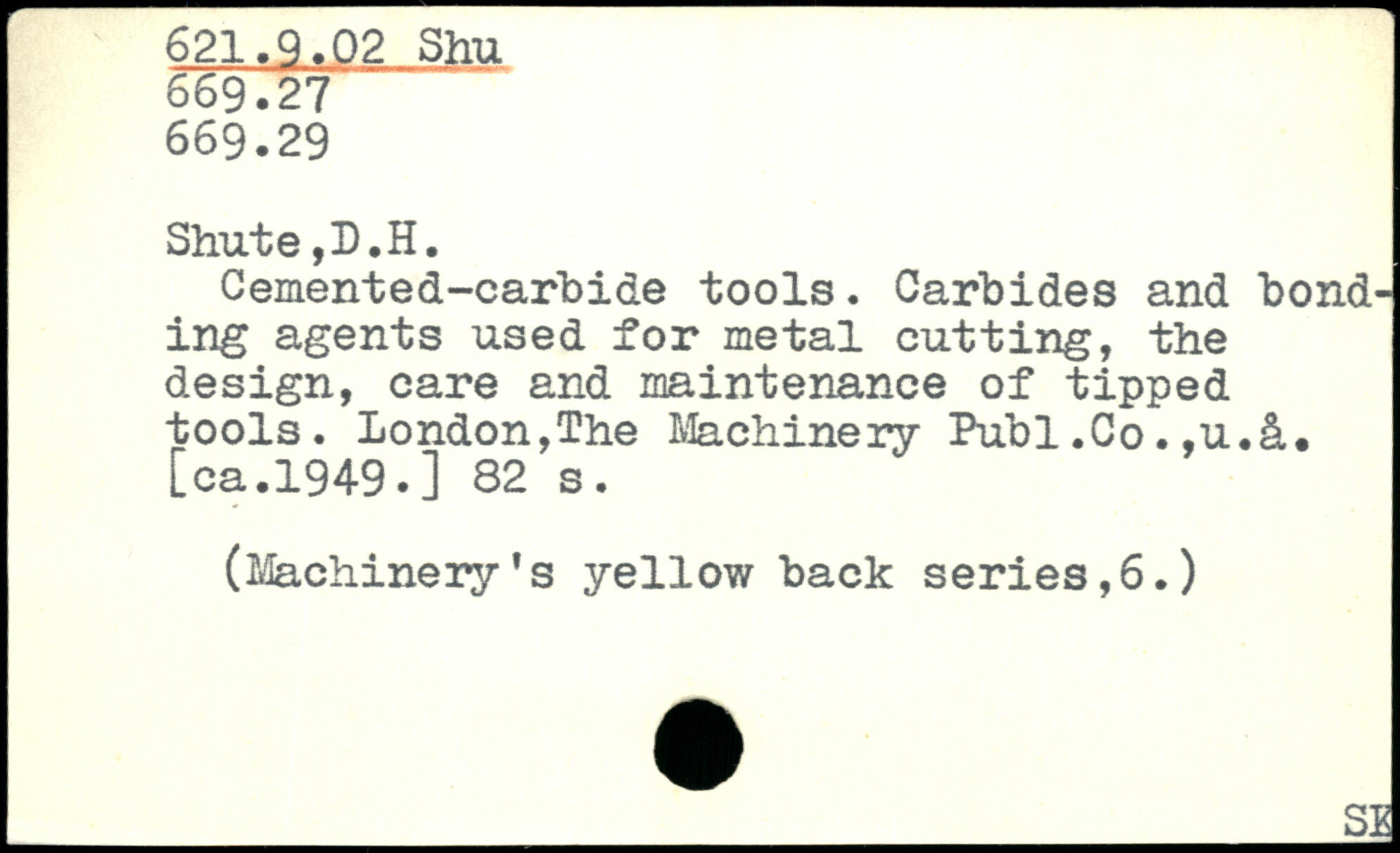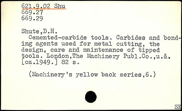 Cemented-carbide tools. Carbides and bonding agents used for metal cutting, the design, care and maintenance of tipped tools. London,The Machinery Publ.Co.,u.â. [ca.1949.]