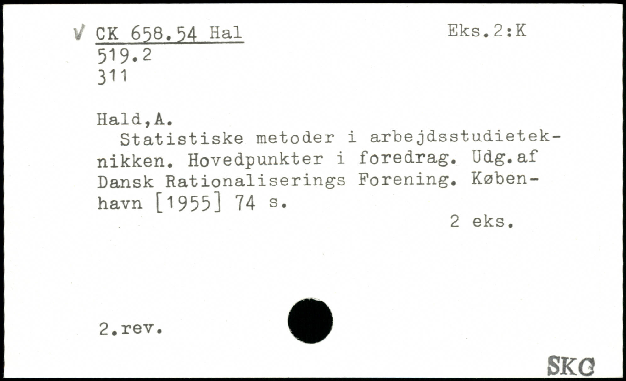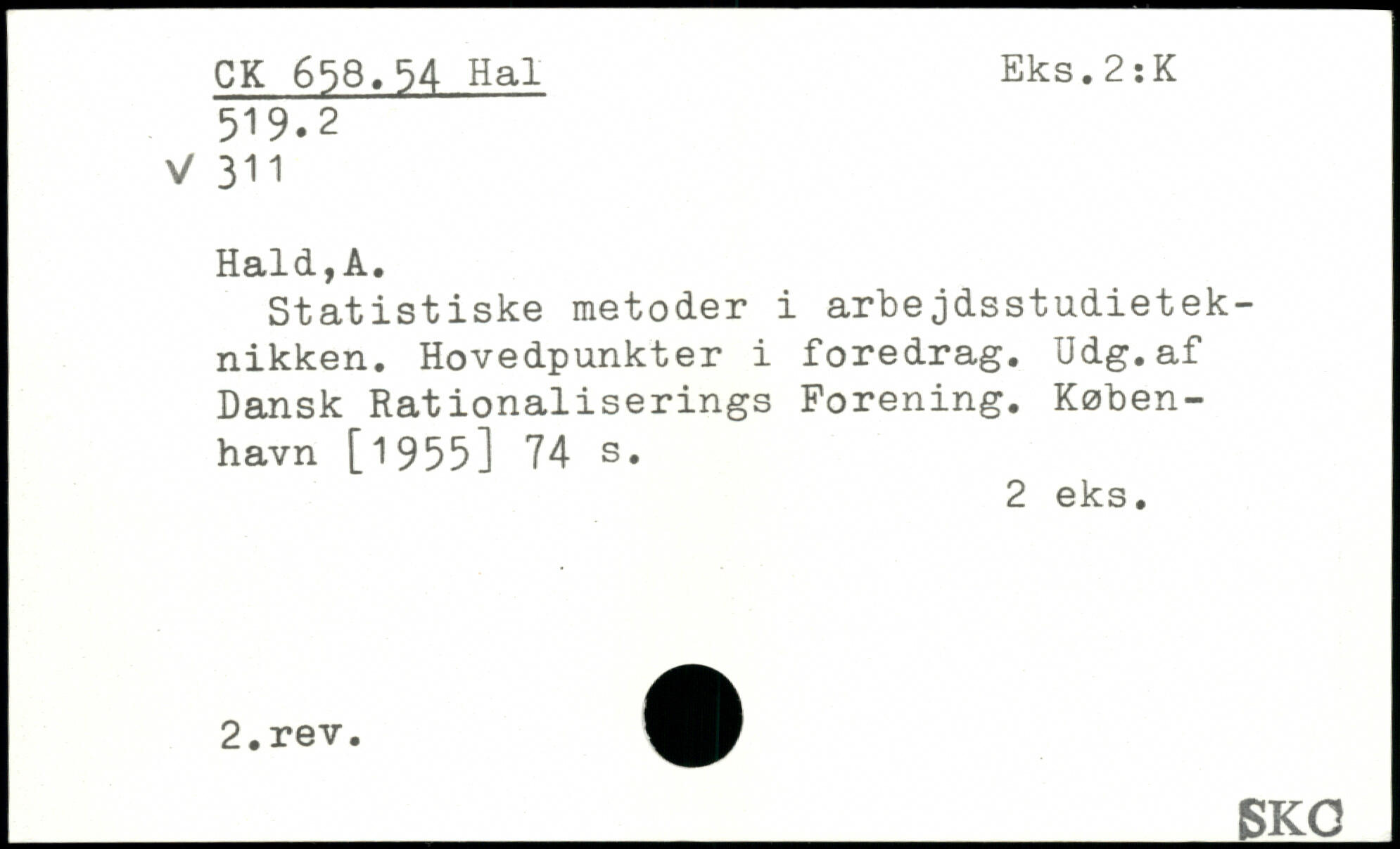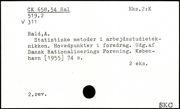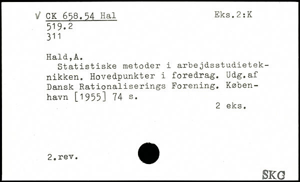 Statistiske metoder i arbejdsstudieteknikken. Hovedpunkter i foredrag. Udg.af Dansk Rationaliserings Forening.