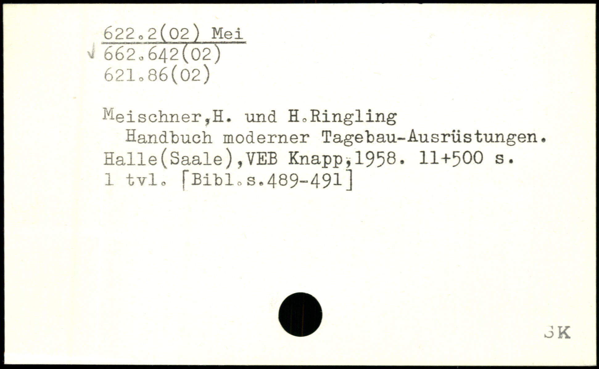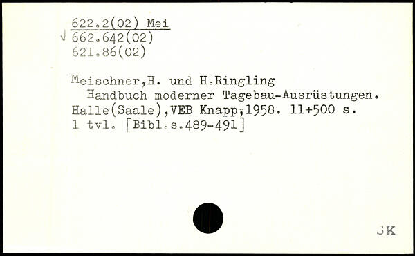 ^eischner,H. und H.Ringling Handbuch moderner Tagebau-Ausrüstungen. Halle(Saale),VEB Knapp.1958.
