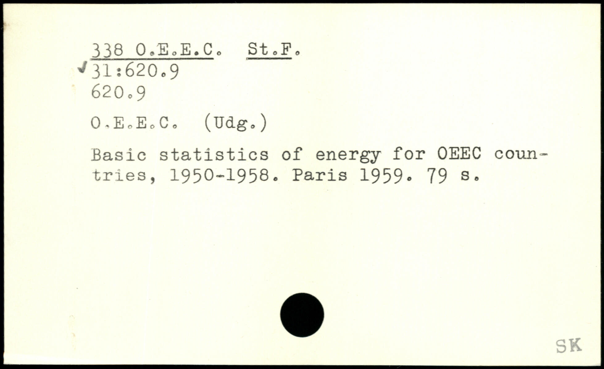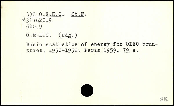Basic statistics of energy for OEEC countries, 1950-1958.