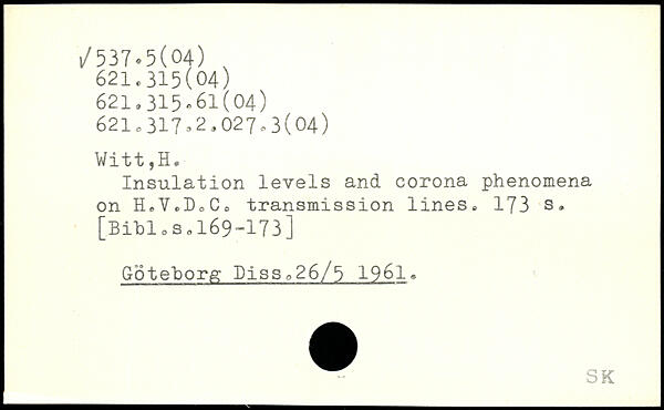 Insulation levels and corona phenomena on H.VcDoCo transmission lines.