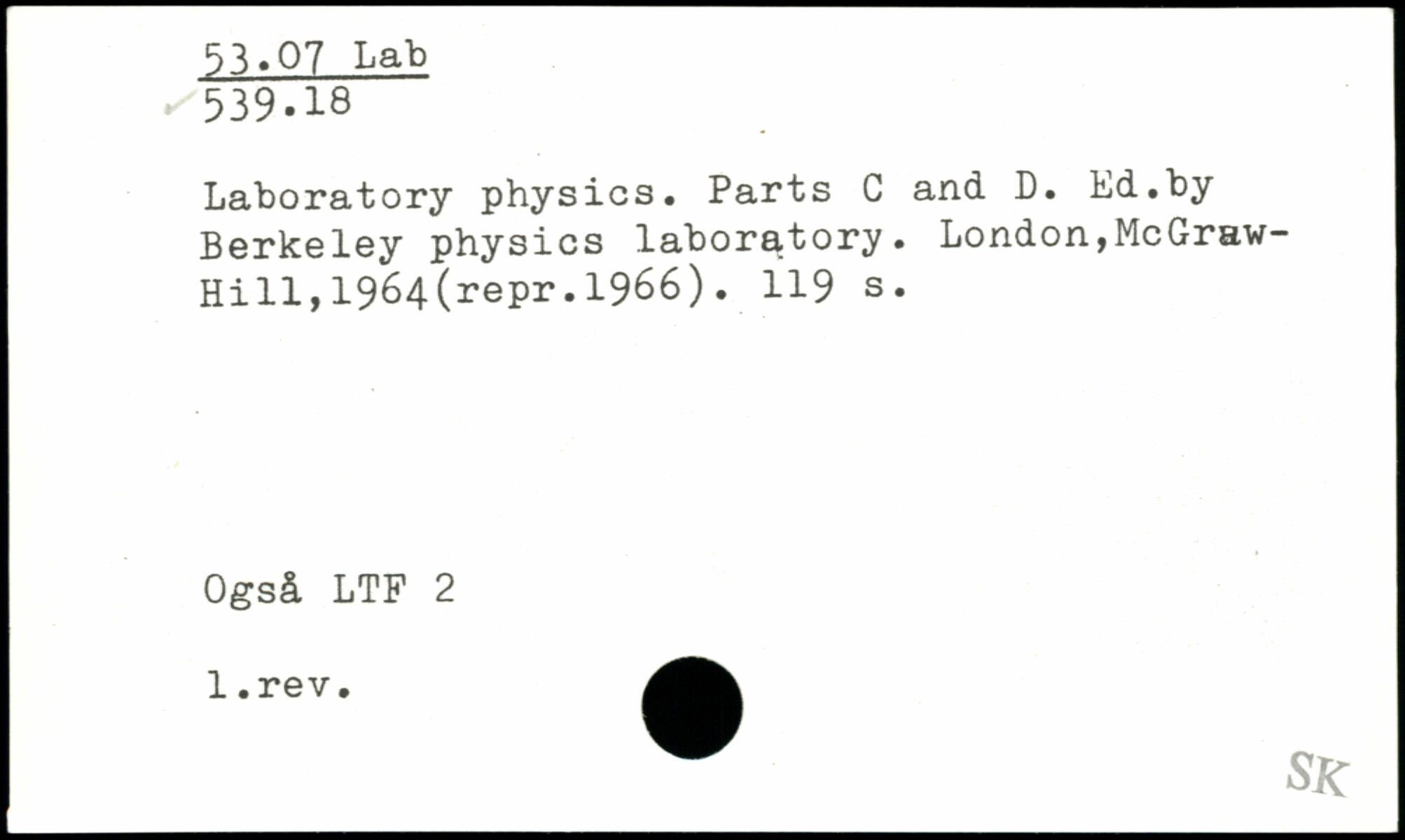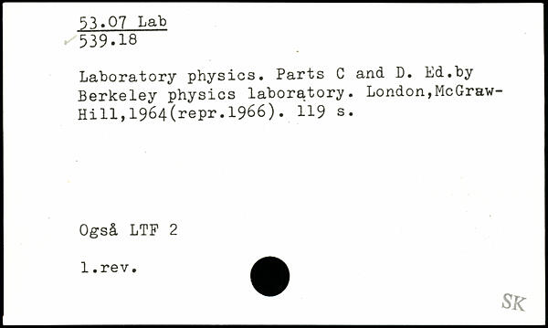 Laboratory physics. Parts C and D. Ed.by Berkeley physics laboratory. London,McGraw-Hi 11,1964(repr. 1966). U