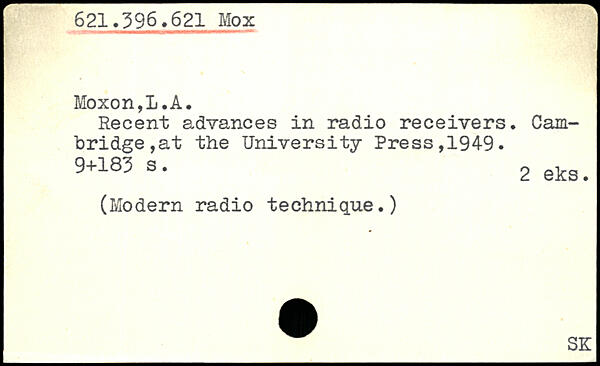 Recent advances in radio receivers. Cambridge,at the University Press,1949.