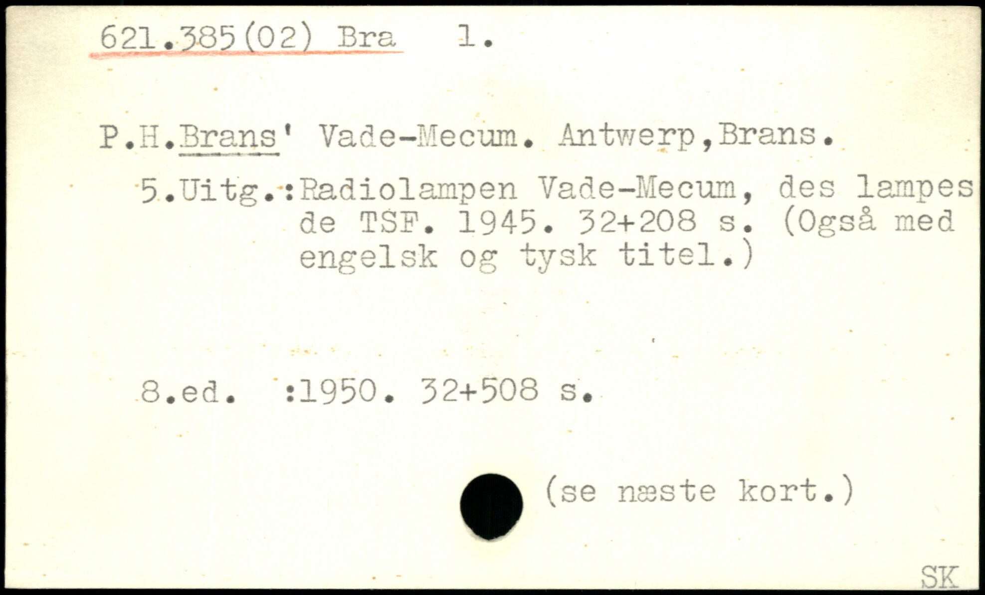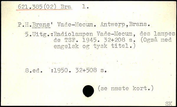 P.H,Brans1 Vade-Mecum. Antwerp,Brans. 5.Uitg.sEadiolampen Vade-Mecum, des lampes de TSF. 1945.