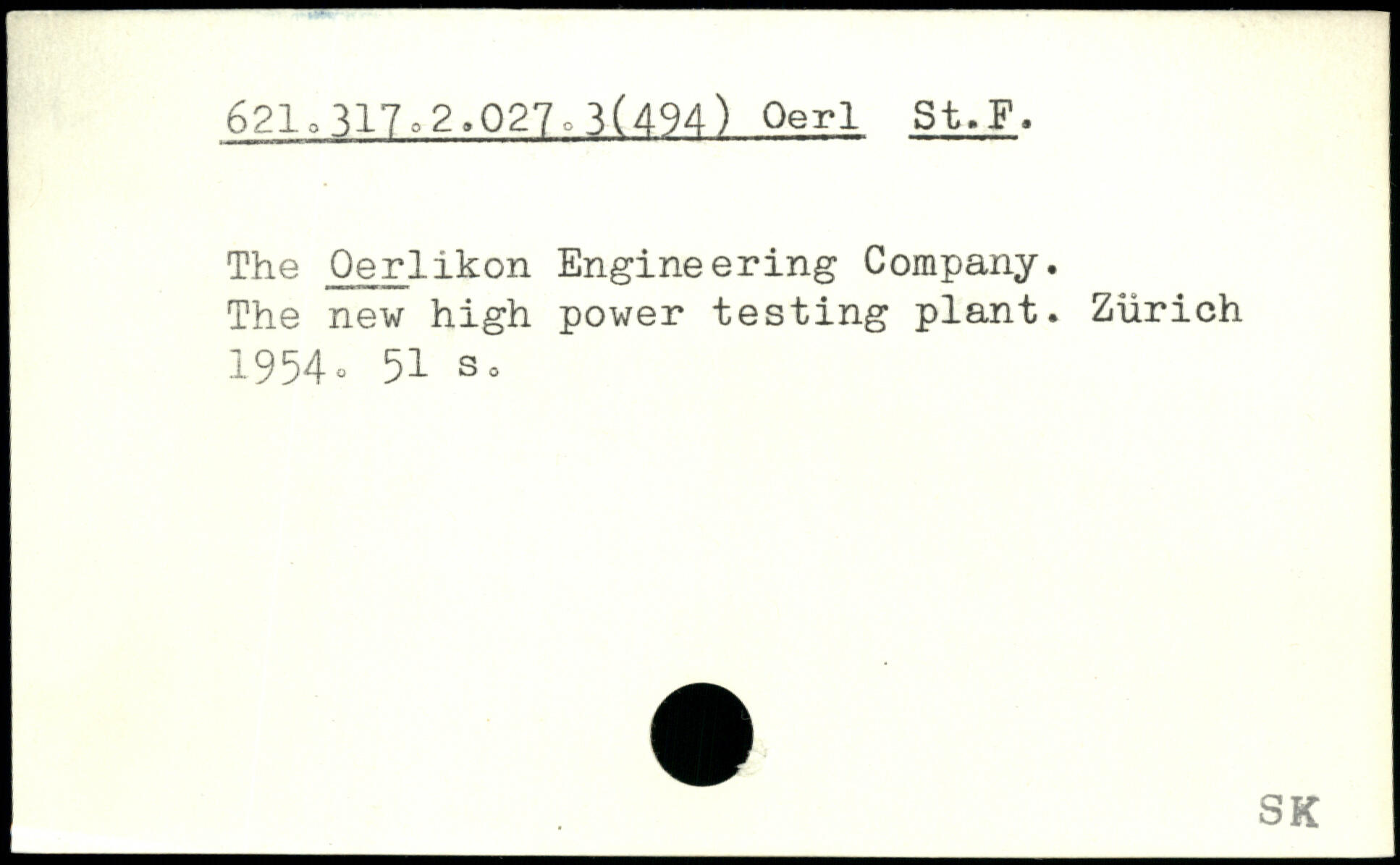 The Oerlikon Engineering Company. The new high power testing plant. Zurich 1954“