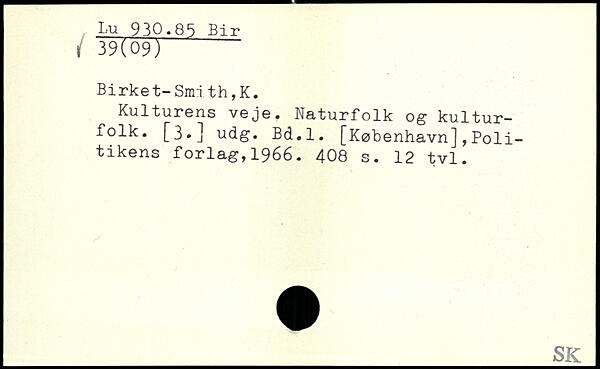 Birket-Sm:i th,K. Kulturens veje. Naturfolk og kulturfolk. [3.] udg. Bd.l.