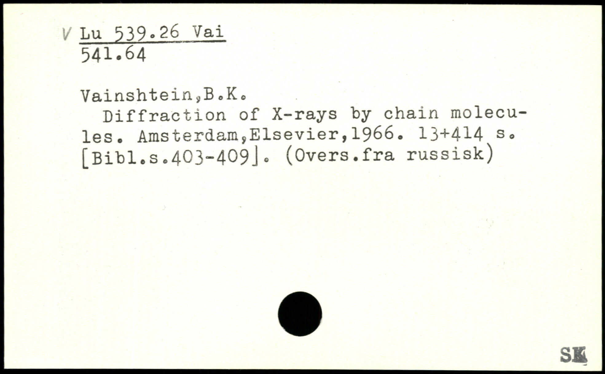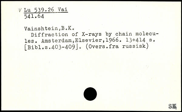 Vainshtein ÿB 0Ko Diffraction of X-rays by chain molecules. Amsterdam.Elsevier,1966.