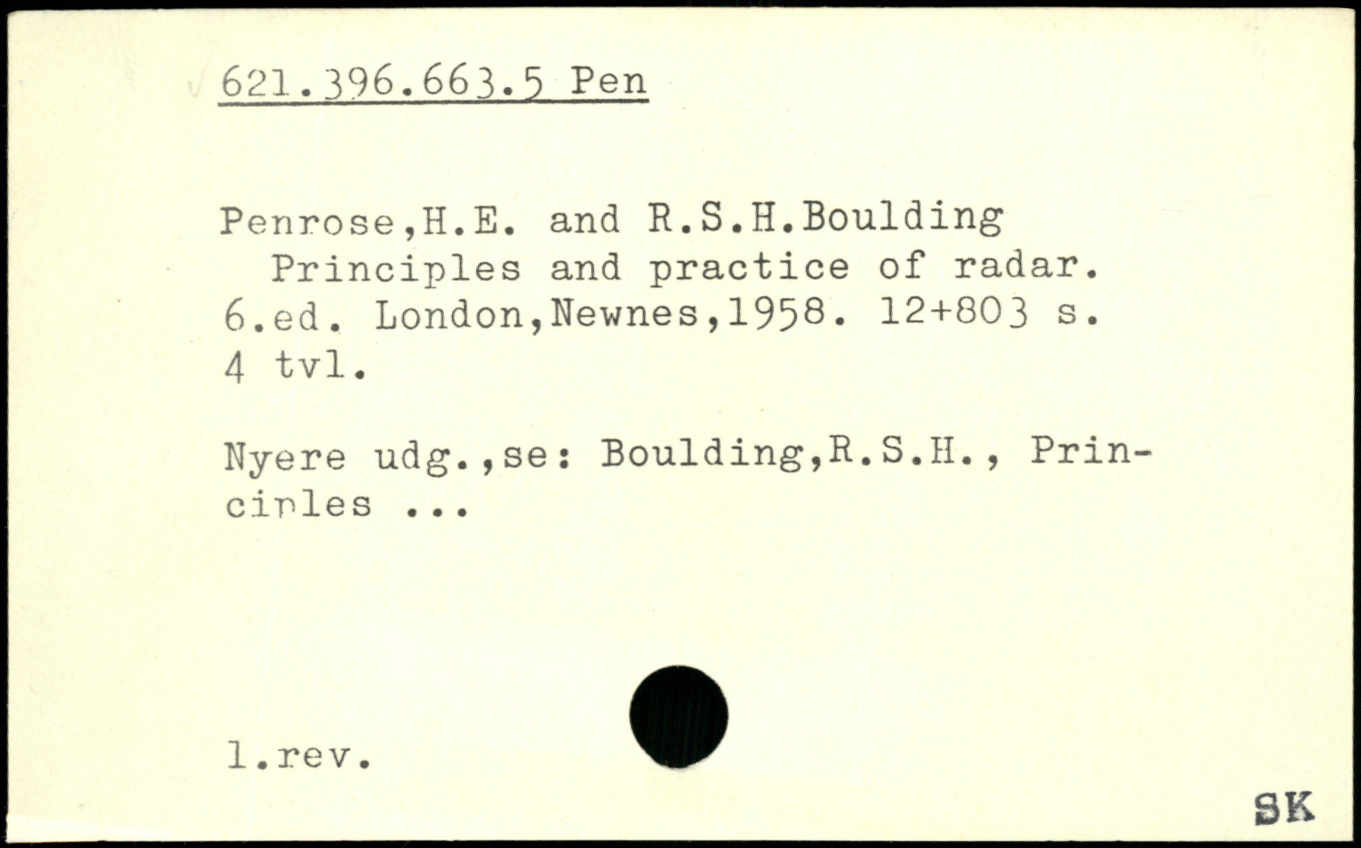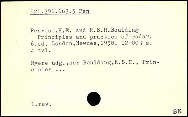 Penrose,H.E. and R.S.H.Boulding Principles and practice of radar.