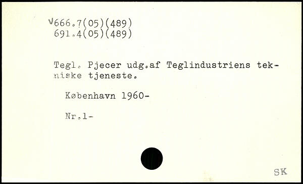 Tegl,, Pjecer udg0af Teglindustriens tekniske tjeneste,