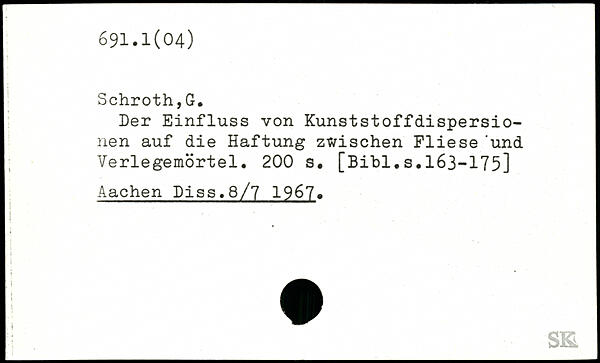 Der Einfluss von Kunststoffdispersionen auf die Haftung zwischen Fliese 'und Verlegemörtel.