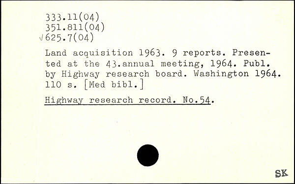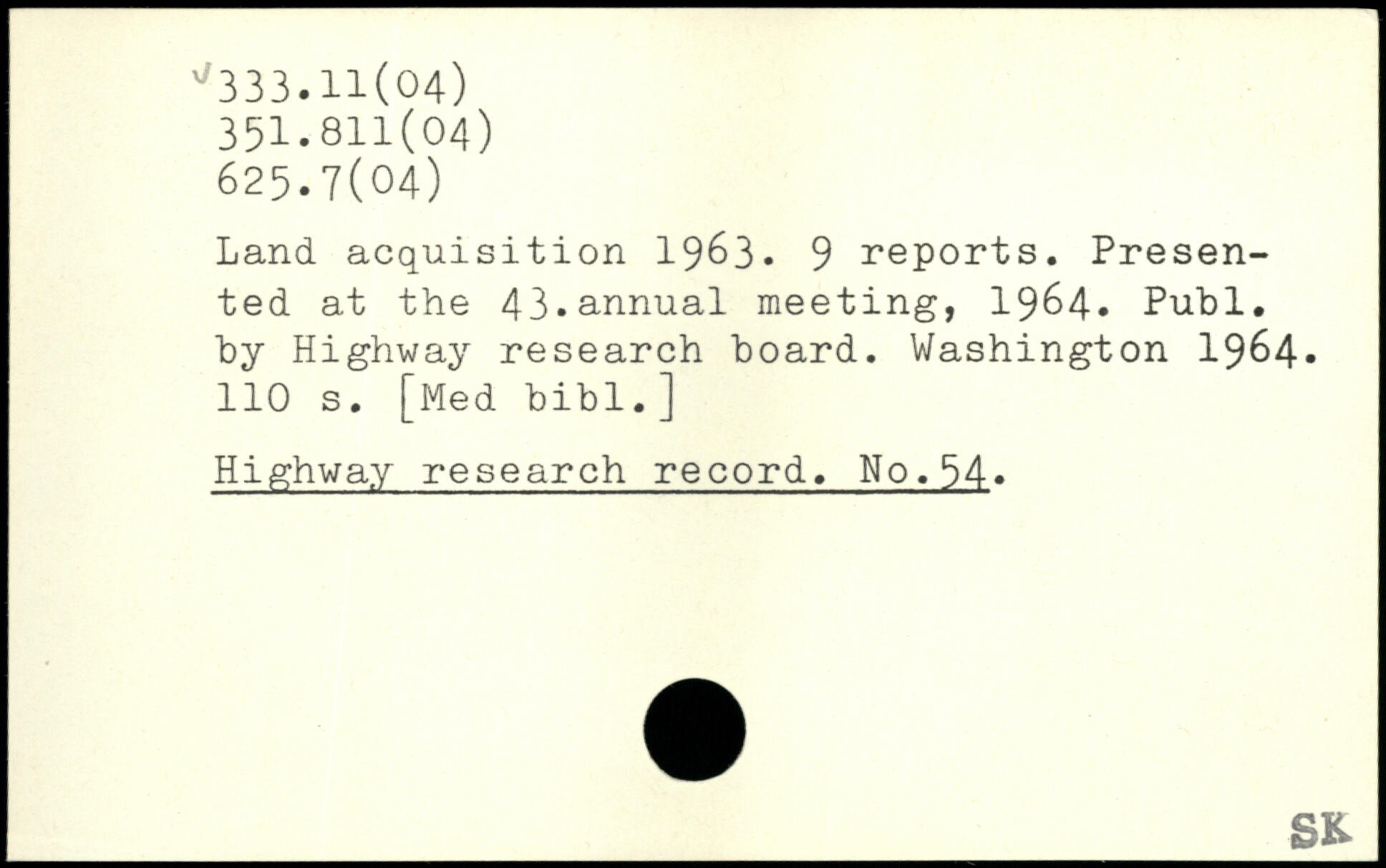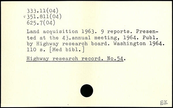 Land acquisition 1963. 9 reports. Presented at the 43.annual meeting, 1964.